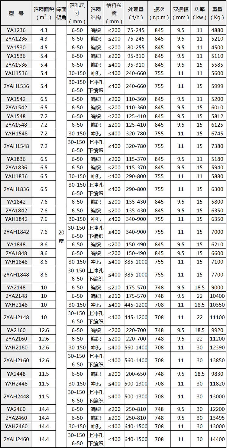YA系列圓振動篩的主要技術(shù)參數(shù):