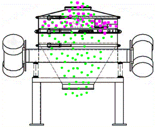 (2-2)直排篩工作原理:該系列篩機(jī)是利用兩側(cè)臥式振動(dòng)電機(jī)為激振源,振動(dòng)電機(jī)置于機(jī)體一側(cè),物料進(jìn)入設(shè)備內(nèi)部后,受振動(dòng)源作用力在篩面上做橢圓運(yùn)動(dòng)軌跡.快速并往復(fù)完成過網(wǎng)動(dòng)作的同時(shí),振動(dòng)力能往并連續(xù)的對(duì)物料產(chǎn)生剝離、打散及重組的作用,從而使物料快速過網(wǎng),不能過網(wǎng)物料則按設(shè)備運(yùn)動(dòng)軌跡由篩上排料口排出,完成篩分作業(yè)過程;
