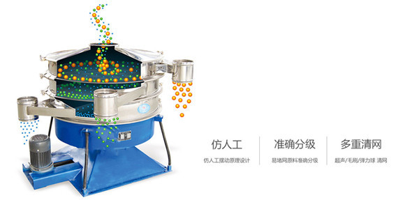 即可調節偏心距的激振器產生了非線性三維運動,物料也產生同樣的近似手動作業的運動,從而達到篩分之目的,再配合篩分附件可得到更加理想的篩分效果;適合于圓球狀、圓柱狀、片狀、乃至不規則形狀易堵網且需要精密篩分的物料。