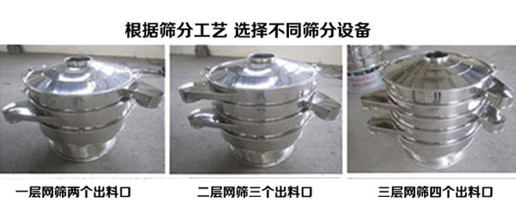 任何顆粒、粉末、粘液一定范圍內均可篩選。篩分細至500目或0.028mm, 過濾小可至5微米。分級篩選,可篩一至五層篩網(wǎng),能同時進行二至六個等級的分選或過濾。