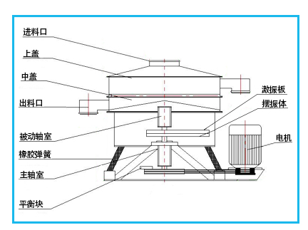振動電機:是設(shè)備的主要動力來源,通過振動電機激振力的作用使物料在篩面上運動。