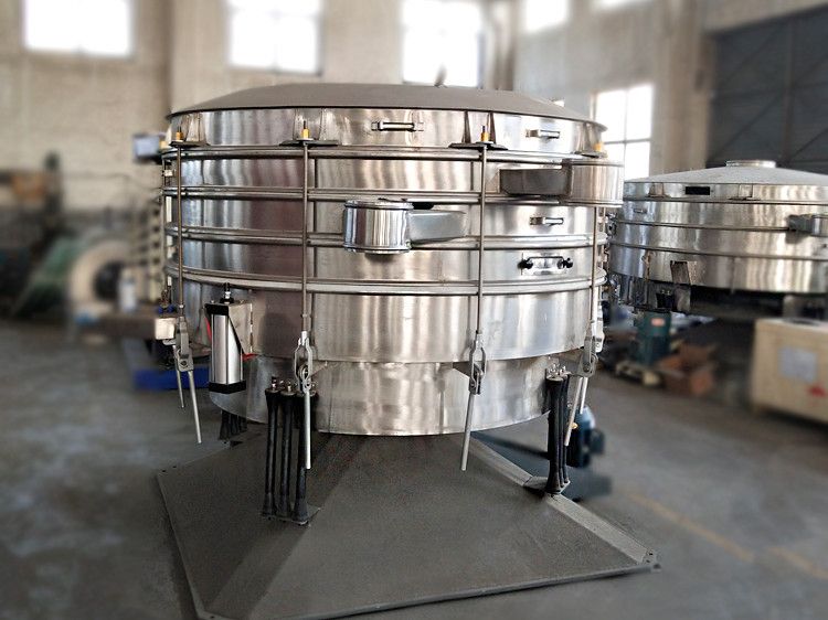 搖擺篩是一種仿人工搖動的低頻旋振篩,其原理是:瞬時運動為沿徑向的位移和以此位移為軸的圓周運動的合成(螺旋運動),即可調(diào)節(jié)偏心距的激振器產(chǎn)生了非線性三維運動,物料也產(chǎn)生同樣的近似手動作業(yè)的運動,從而達到篩分之目的,再配合篩分附件可獲得更加理想的篩分效果,適合于圓形狀、圓柱狀、片狀、乃至 于規(guī)則形狀易堵網(wǎng)且需要精細篩分的物料,是為了滿足大產(chǎn)量、高密度篩分用戶而設(shè)計的一種篩分設(shè)備,與一般圓形篩相比,它的篩分精度、效率、產(chǎn)量、篩網(wǎng)壽命能提高5-10倍,符合所有精細與超細范圍的粉末與微粒狀物料,特別適合難以處理的物料。還可單層或多層篩分,一次可篩分至6個粒度。