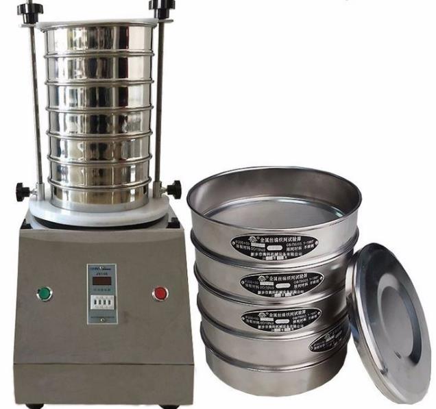 再通過振動盤傳導(dǎo)至安放在振動盤上部篩框上,然后由需要檢測目數(shù)的篩框把小于篩網(wǎng)孔徑的物料顆粒篩分至下層篩框,如此層層篩選,