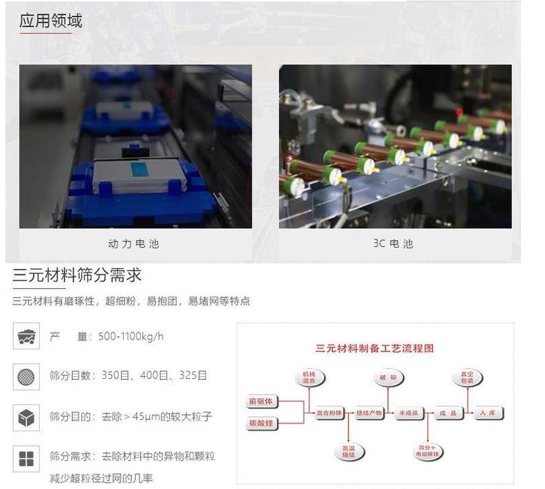 由于超聲波振動在新能源行業(yè)的**表現(xiàn),在線清網(wǎng)效果明顯,對于比較難篩分的物料有其顯著的效果。