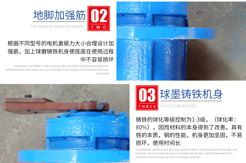 6、振泰立式振動電機選用特制耐震軸承,可靠性高,動力搶進。