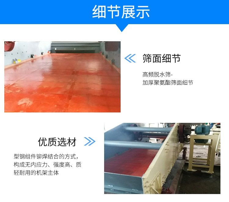 沙干排、水循環(huán)',高頻尾礦干排篩通過設(shè)計的V型篩板結(jié)構(gòu),-5°過濾篩面上尾礦爬坡脫水,干排尾